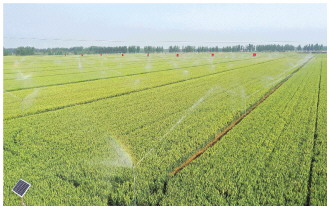 小满时节过后,全区66万亩小麦进入生长后期,也是决定小麦产量和品质的关键时期,区农业农村部门积极引导农民抢抓农时开展后期管护,为夏粮丰产丰收奠定基础。图为蓝村街道春秋永旺种植专业合作社的农民采用立杆式喷灌设备对小麦进行干热风防范管理。 (王田义 常青)