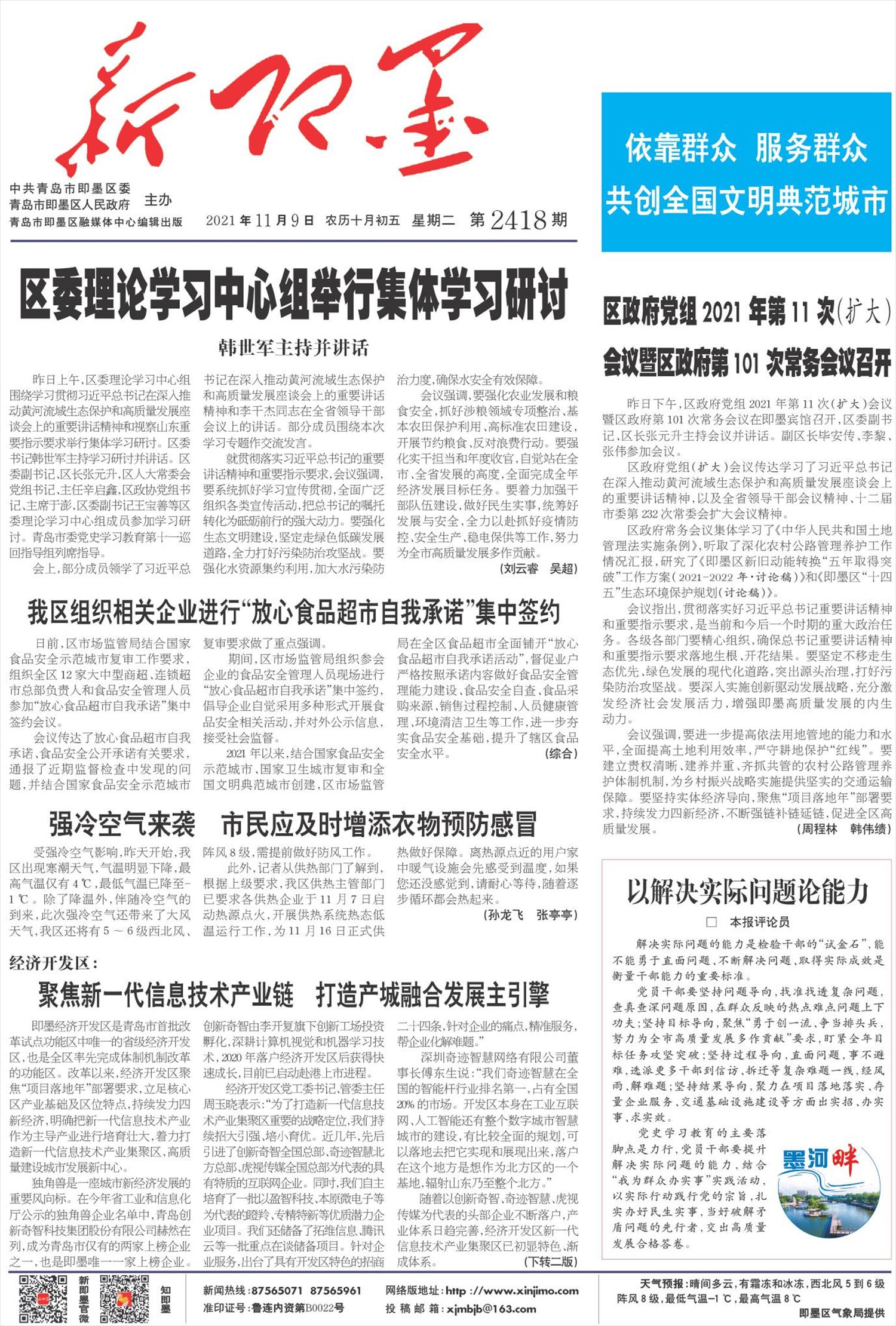 随着以创新奇智、奇迹智慧、虎视传媒为代表的头部企业不断落户,产业体系日趋完善,经济开发区新一代信息技术产业集聚区已初显特色、渐成体系。 (下转二版)