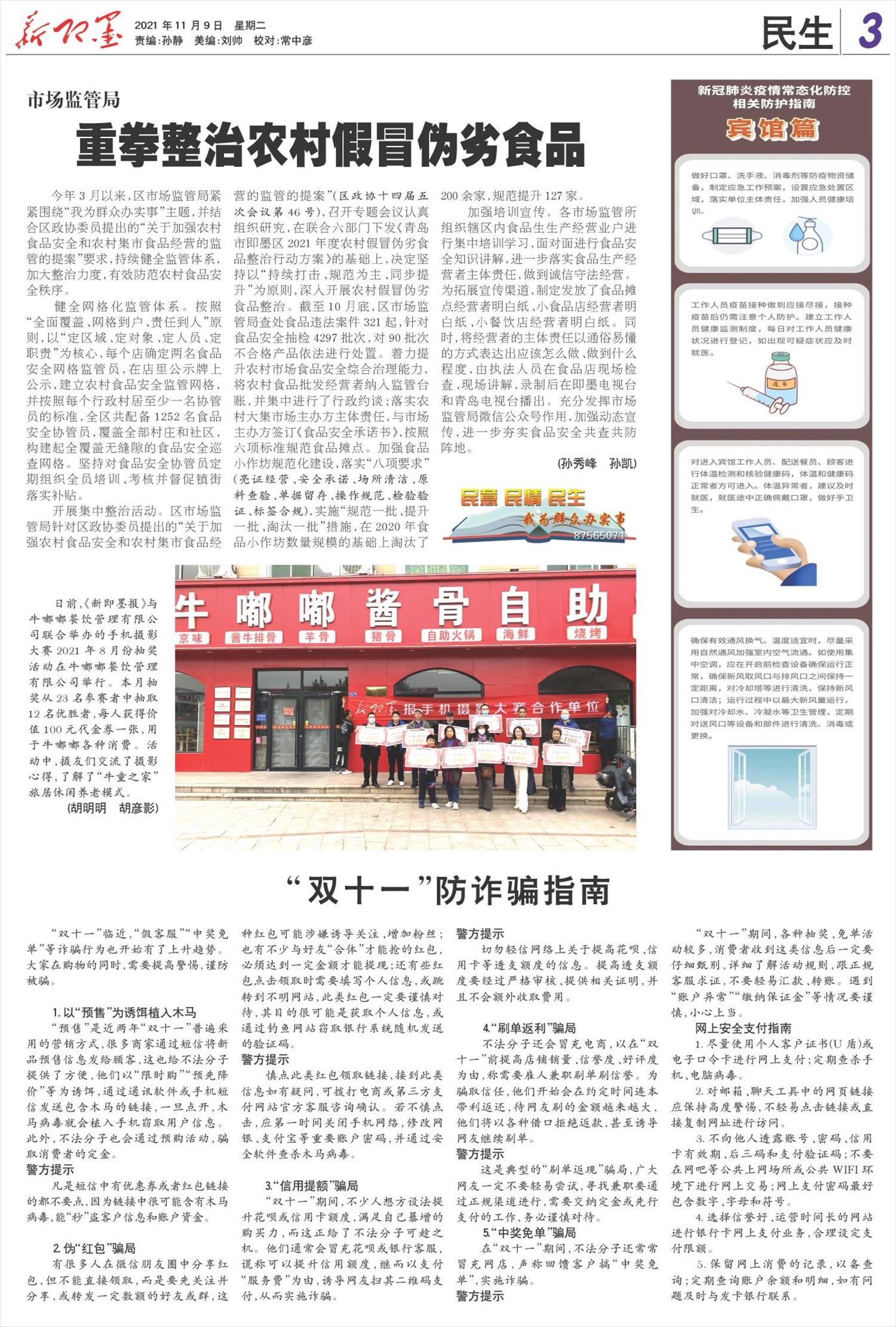 今年3月以来,区市场监管局紧紧围绕“我为群众办实事”主题,并结合区政协委员提出的“关于加强农村食品安全和农村集市食品经营的监管的提案”要求,持续健全监管体系,加大整治力度,有效防范农村食品安全秩序。