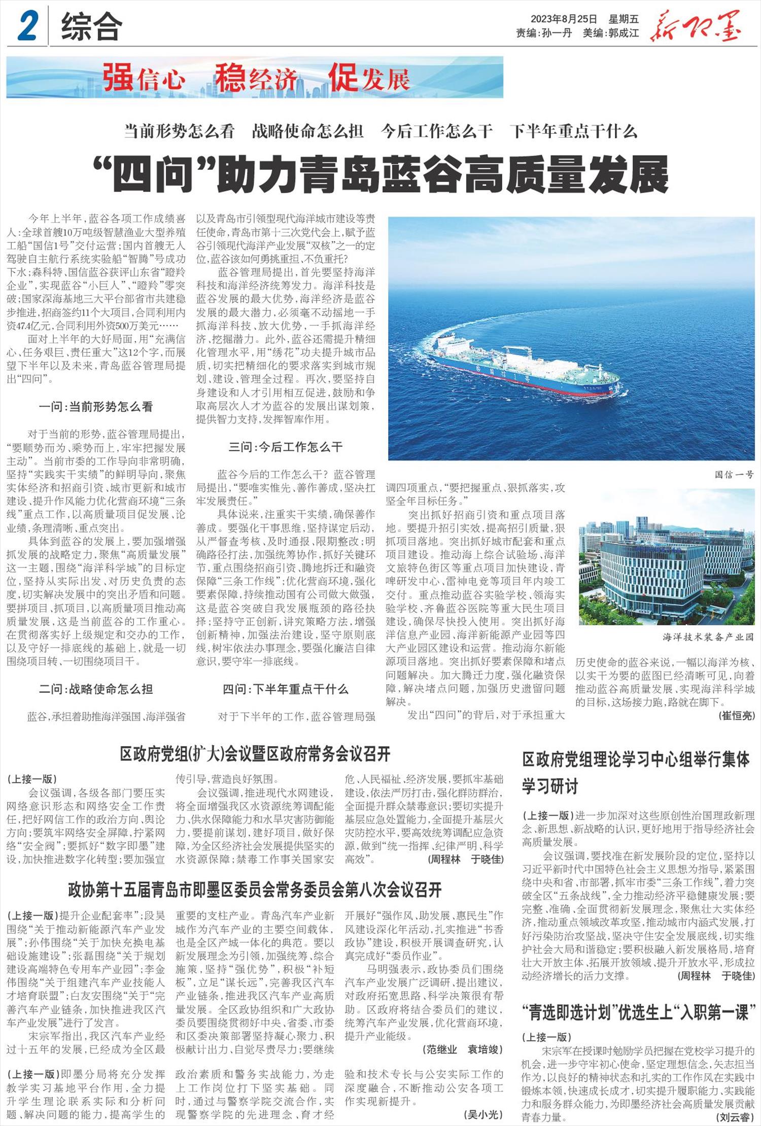 面对上半年的大好局面,用“充满信心、任务艰巨、责任重大”这12个字,而展望下半年以及未来,青岛蓝谷管理局提出“四问”。