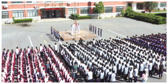 “全民国防教育月”系列活动启动仪式后,蓝村街道南泉中学举行升旗仪式。