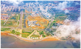 《白云飘至滨海边》这张照片,表现了即墨区经济社会蓬勃发展,以及东部沿海的繁华与壮观,美丽的海岸线已成为海洋经济的新高地,祝愿即墨越来越好。 (袁福夏)