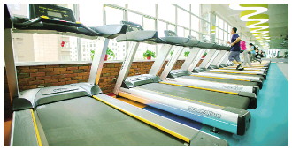 健身房里的商用跑步机。