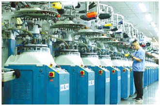 假期过后,我区各企业一片繁忙,员工们铆足干劲,抢生产保交期,冲刺四季度,确保全年红。图为青岛即发集团华盛袜业有限公司的制袜工人操控智能化设备,批量生产出口到海外市场的产品。 (梁孝鹏 摄)