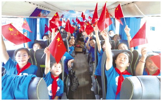 参观结束后,队员们参加升旗仪式,在庄严肃穆的国歌声中,鲜艳的五星红旗冉冉升起,迎风飘扬,在这庄严的时刻,全场肃立行注目礼,队员们行队礼,国旗下歌声中,少年们的脸庞上洋溢出自豪与神圣的神情。