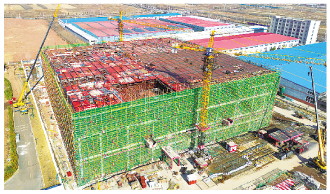 2024年,我区省市区三级重点项目285个,计划总投资2021亿元,项目数量及规模均位居青岛十区市前列。截至目前,已开工在建136个,预计一季度项目开工在建率达86%以上。图为百洋项目施工场景。 (刘盛林)