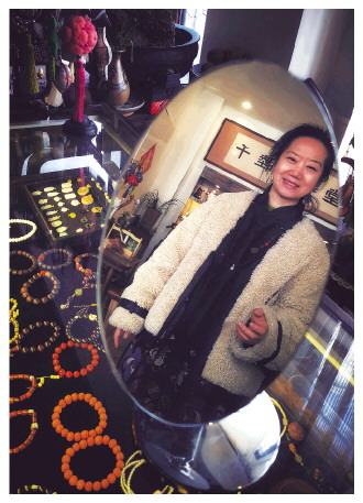 在即墨古城县衙广场南侧,开满玉兰花的小巷里,有一家“千睦”香囊馆。店招古色古香,步入其中,一股中草药香味扑面而来。中式极简的空间里,墙上、桌上、门上挂着各式各样的香囊、香珠,一群群穿着汉服的“小姐姐”“小哥哥”入店,流连于一件件手工香囊前品鉴,爱不释手,兴奋地左挑右选。
