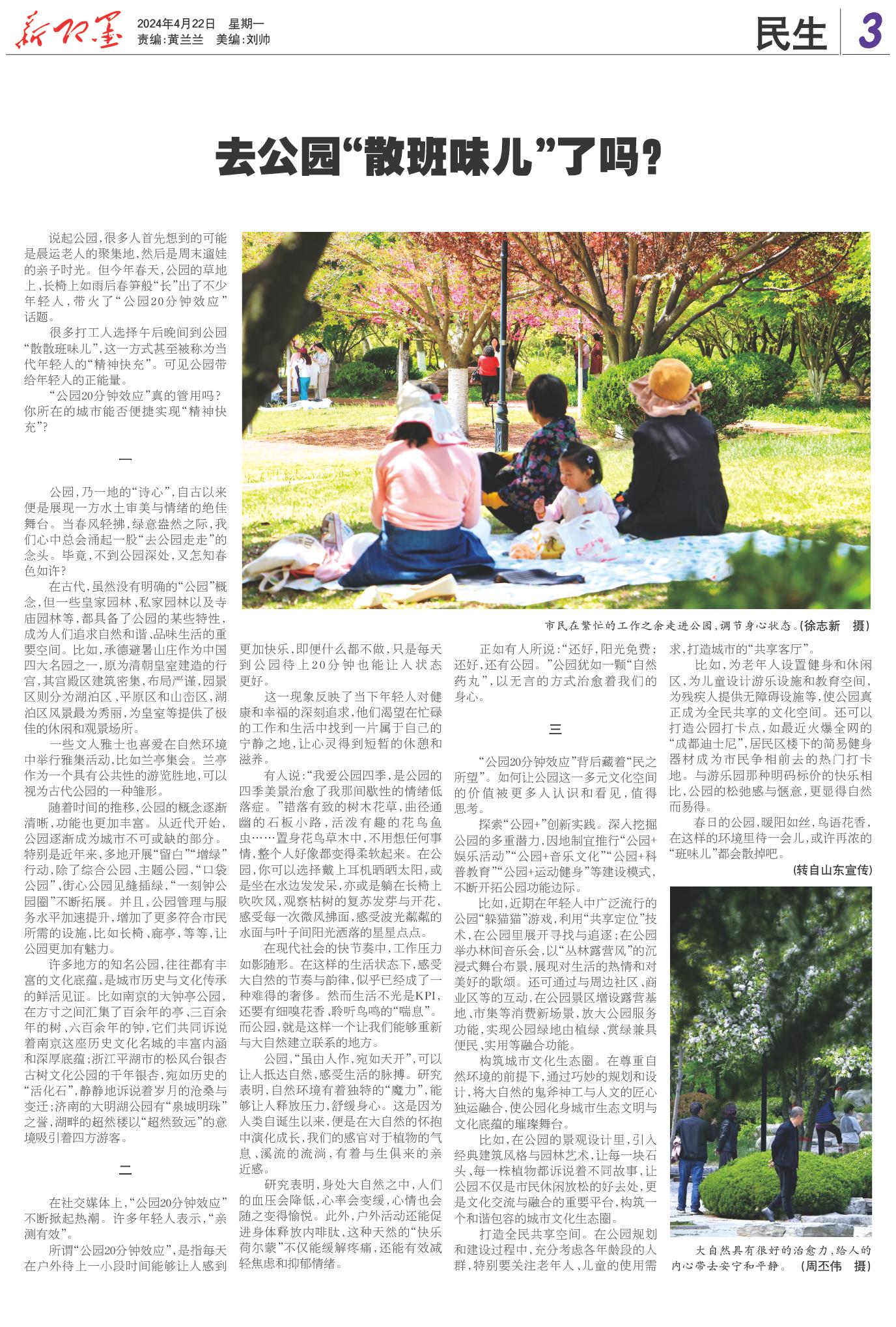 很多打工人选择午后晚间到公园“散散班味儿”,这一方式甚至被称为当代年轻人的“精神快充”。可见公园带给年轻人的正能量。