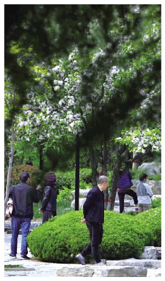 市民在繁忙的工作之余走进公园,调节身心状态。(徐志新 摄)