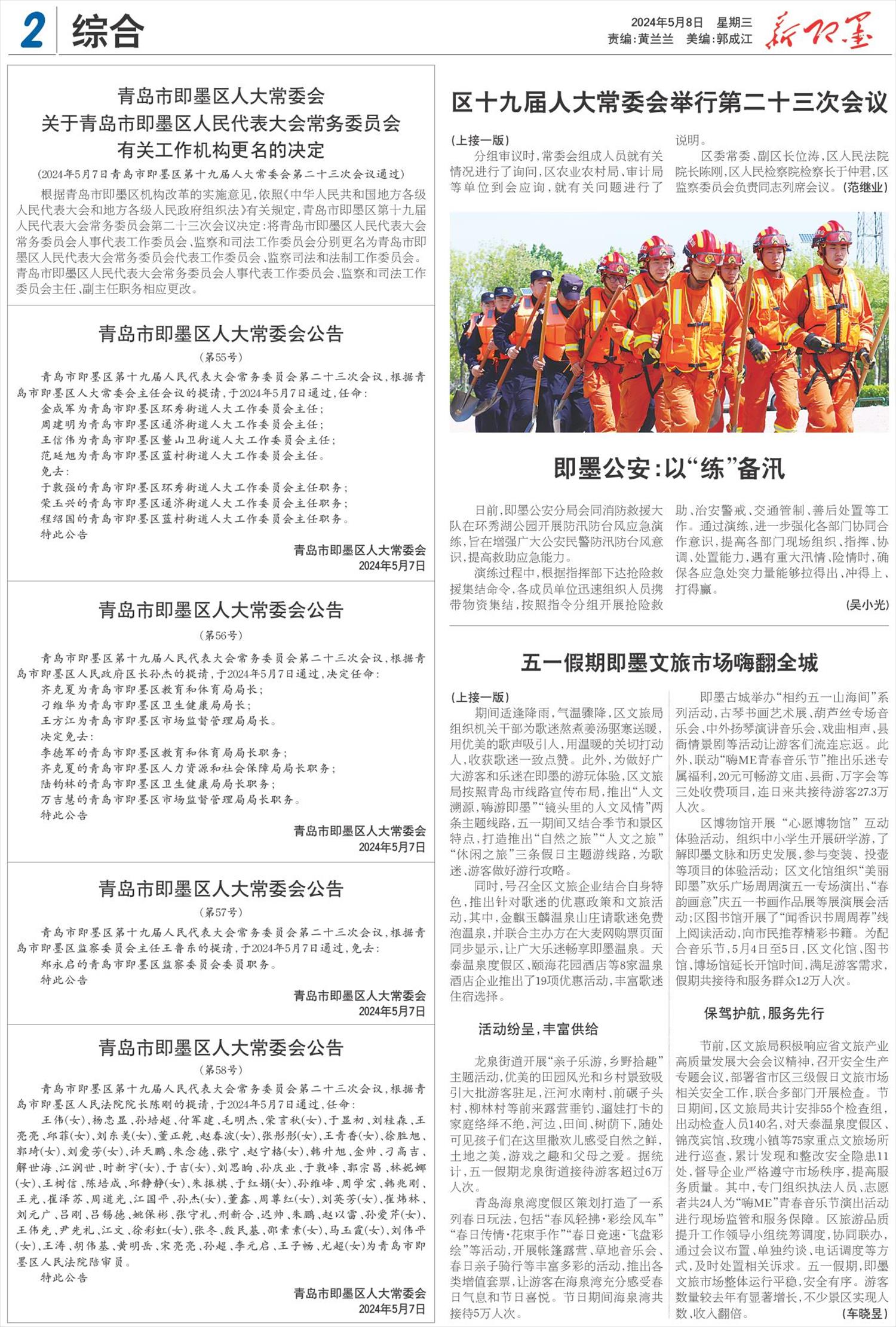 青岛市即墨区第十九届人民代表大会常务委员会第二十三次会议,根据青岛市即墨区人大常委会主任会议的提请,于2024年5月7日通过,任命:
