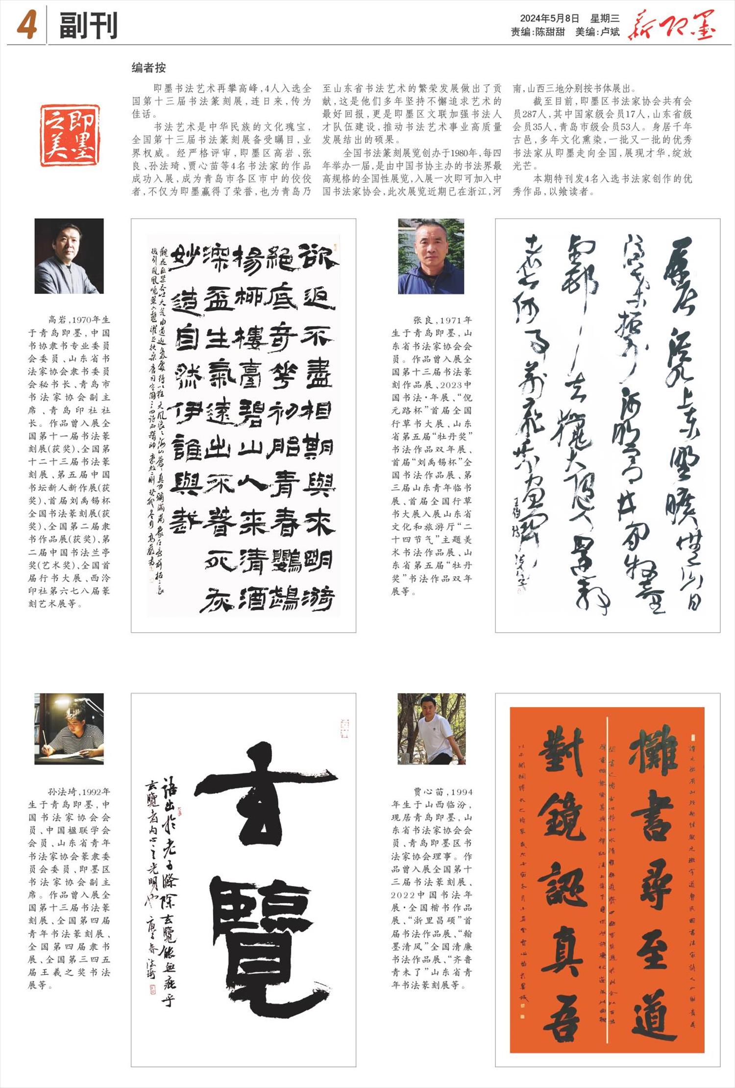 即墨4人入选全国第十三届书法篆刻展