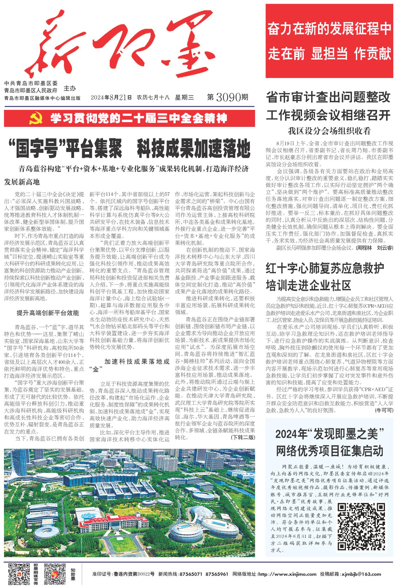 青岛蓝谷正在围绕产业链部署创新链、围绕创新链布局产业链,以企业需求为导向推动企业开放应用场景,为新技术、新成果提供市场化应用“试水”。为深度拓展市场空间,青岛蓝谷将持续推进“智汇蓝谷·揭榜挂帅”系列活动,面向全国涉海企业征求技术需求,进一步丰富科技应用场景,推动成果落地。此外,将推动院所通过云端与规上企业共建研发中心,为企业创新赋能。在推动天津大学青岛研究院、武汉理工大学青岛研究院等院所实现“科技上云”基础上,继续促进海信、海尔、华大基因、青岛啤酒等一批行业领军企业与蓝谷院所的深度合作,多领域、全链条赋能科技成果转化。 (下转二版)
