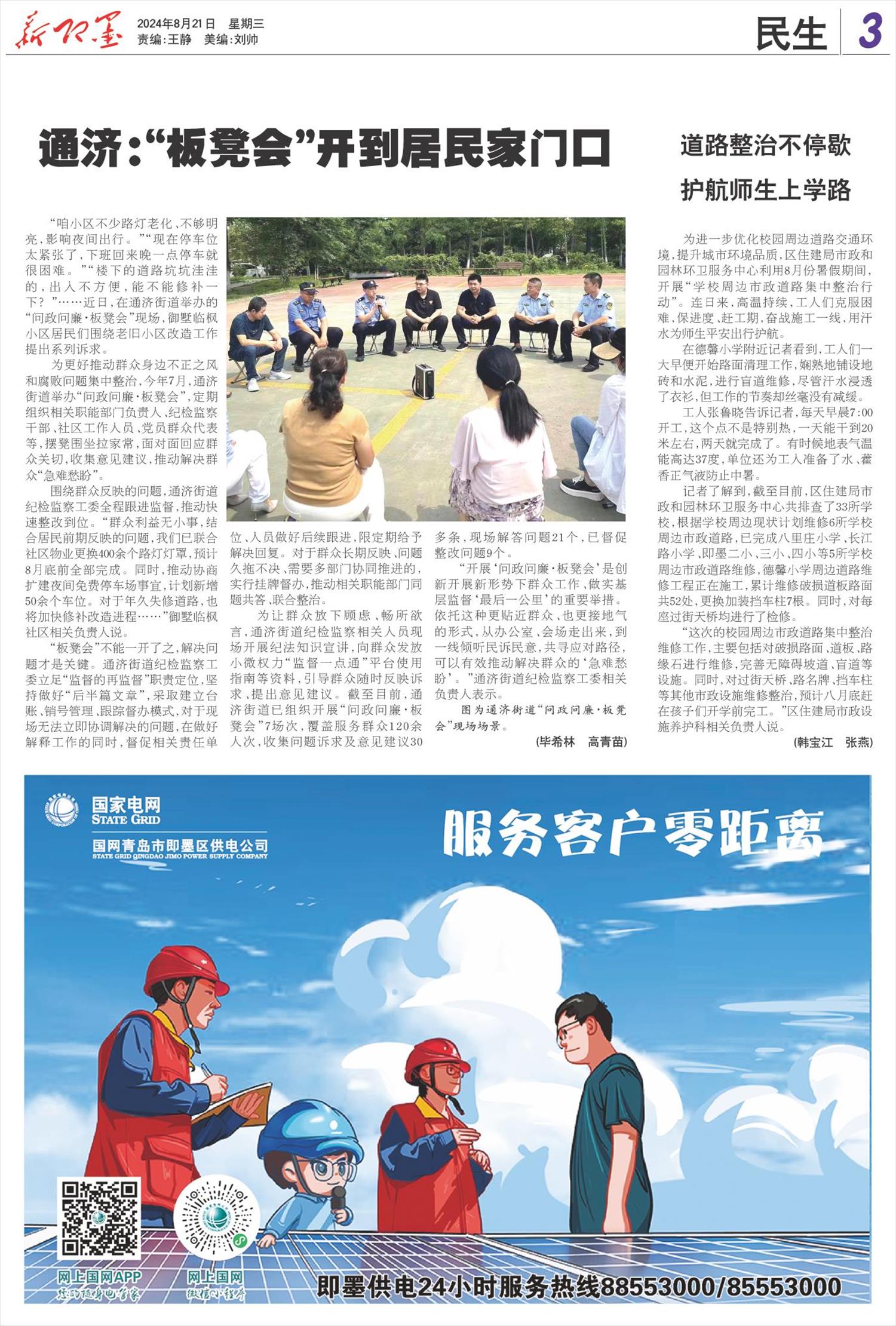 围绕群众反映的问题,通济街道纪检监察工委全程跟进监督,推动快速整改到位。“群众利益无小事,结合居民前期反映的问题,我们已联合社区物业更换400余个路灯灯罩,预计8月底前全部完成。同时,推动协商扩建夜间免费停车场事宜,计划新增50余个车位。对于年久失修道路,也将加快修补改造进程……”御墅临枫社区相关负责人说。