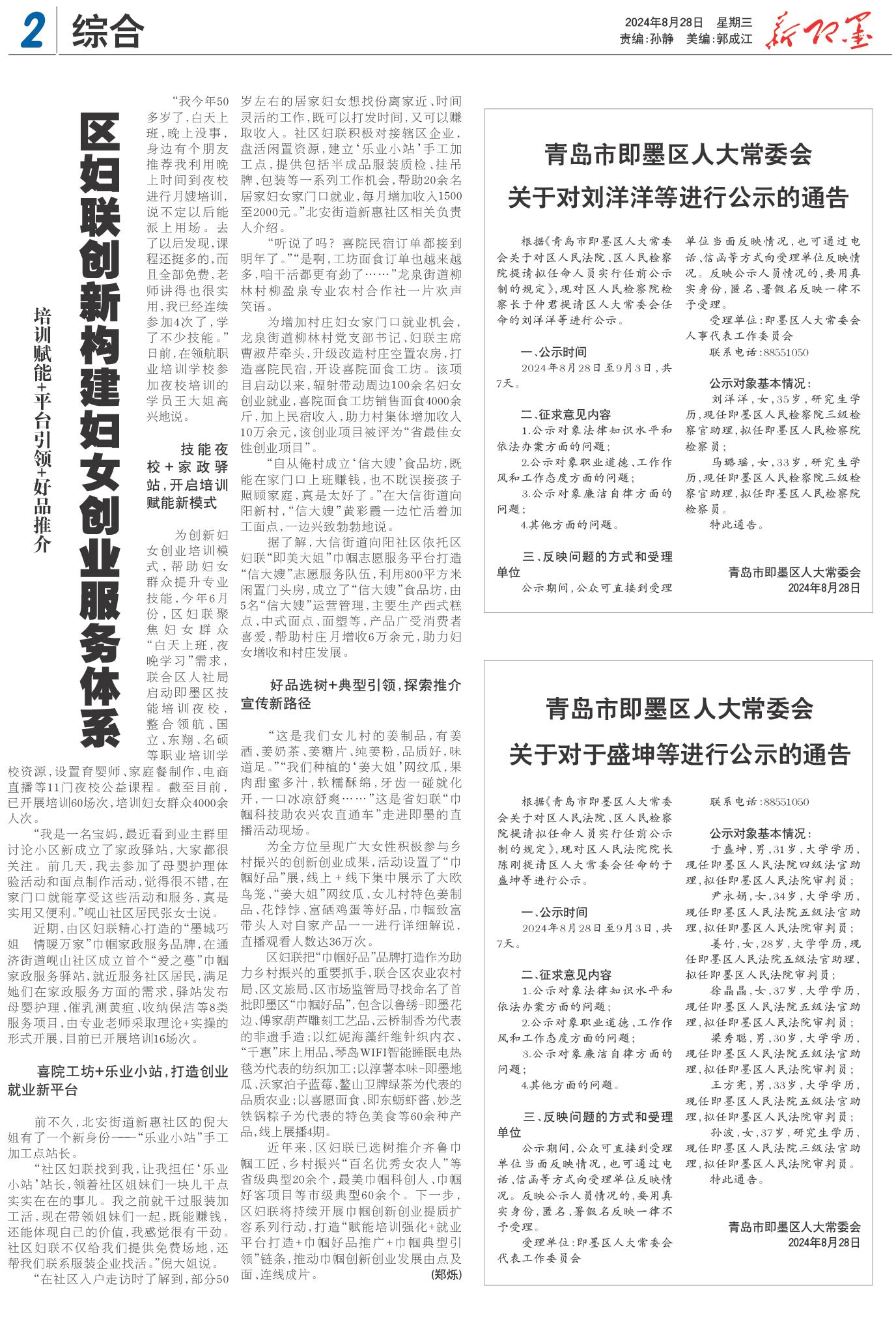青岛市即墨区人大常委会关于对刘洋洋等进行公示的通告