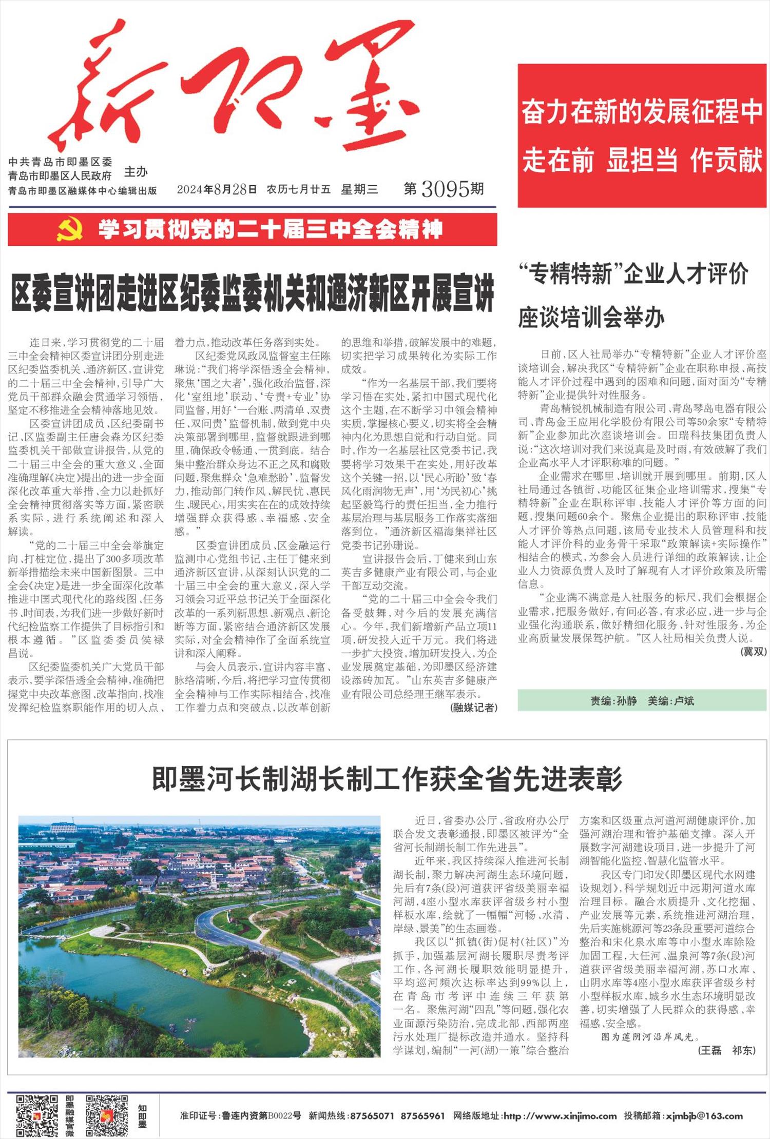 我区以“抓镇(街)促村(社区)”为抓手,加强基层河湖长履职尽责考评工作,各河湖长履职效能明显提升,平均巡河频次达标率达到99%以上,在青岛市考评中连续三年获第一名。聚焦河湖“四乱”等问题,强化农业面源污染防治,完成北部、西部两座污水处理厂提标改造并通水。坚持科学谋划,编制“一河(湖)一策”综合整治方案和区级重点河道河湖健康评价,加强河湖治理和管护基础支撑。深入开展数字河湖建设项目,进一步提升了河湖智能化监控、智慧化监管水平。