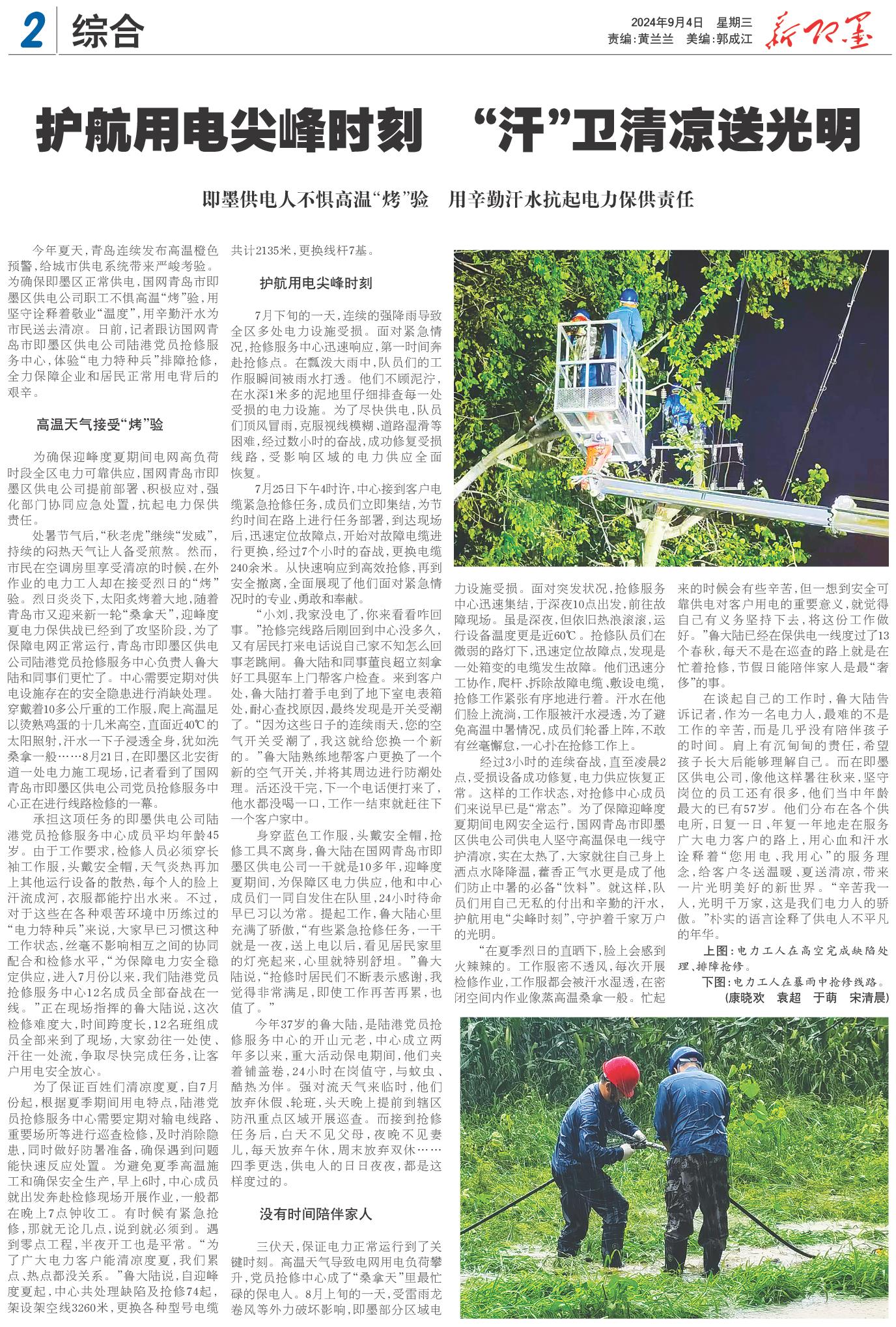 为确保迎峰度夏期间电网高负荷时段全区电力可靠供应,国网青岛市即墨区供电公司提前部署、积极应对,强化部门协同应急处置,抗起电力保供责任。