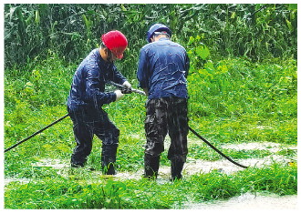 7月下旬的一天,连续的强降雨导致全区多处电力设施受损。面对紧急情况,抢修服务中心迅速响应,第一时间奔赴抢修点。在瓢泼大雨中,队员们的工作服瞬间被雨水打透。他们不顾泥泞,在水深1米多的泥地里仔细排查每一处受损的电力设施。为了尽快供电,队员们顶风冒雨,克服视线模糊、道路湿滑等困难,经过数小时的奋战,成功修复受损线路,受影响区域的电力供应全面恢复。