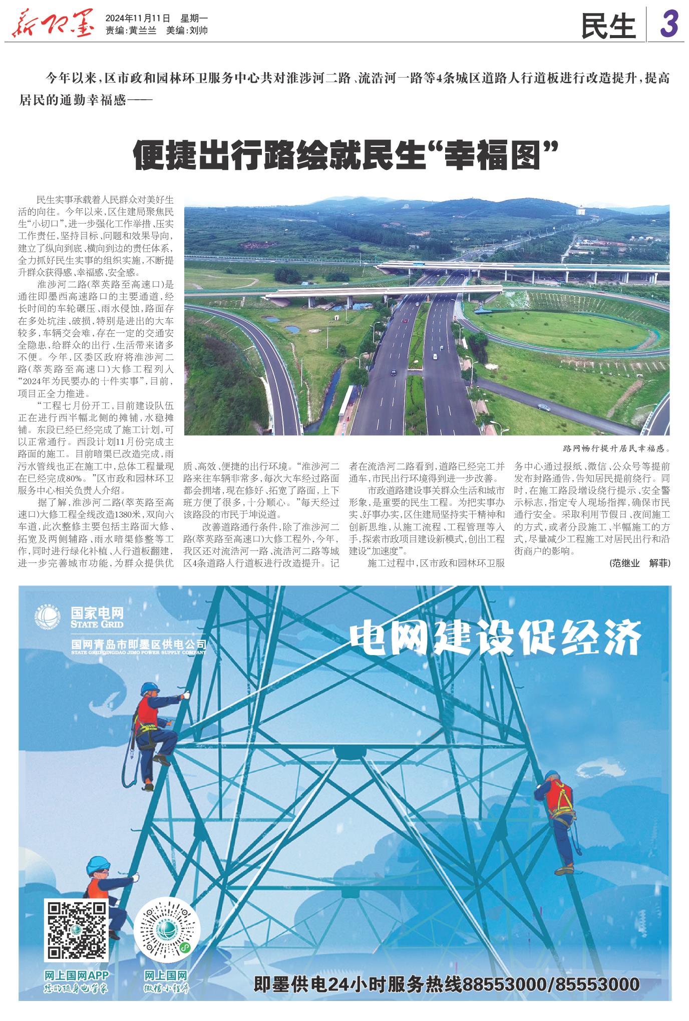 今年以来,区市政和园林环卫服务中心共对淮涉河二路、流浩河一路等4条城区道路人行道板进行改造提升,提高居民的通勤幸福感——便捷出行路绘就民生“幸福图”