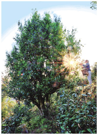“皎然”云南茶叶种植基地内的古茶树。