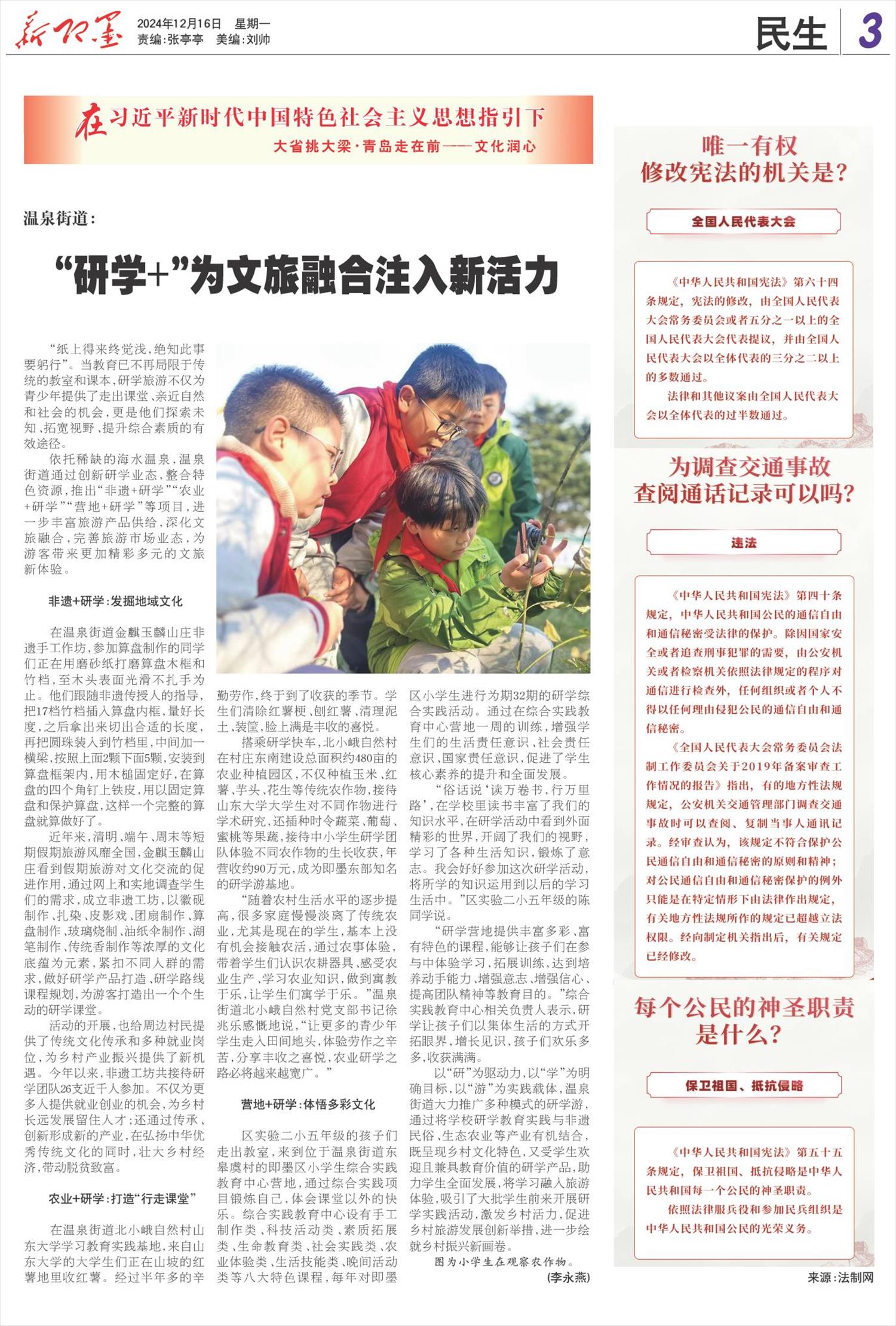温泉街道: “研学+”为文旅融合注入新活力   “纸上得来终觉浅,绝知此事要躬行”。当教育已不再局限于传统的教室和课本,研学旅游不仅为青少年提供了走出课堂、亲近自然和社会的机会,更是他们探索未知、拓宽视野、提升综合素质的有效途径。
