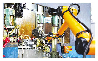 协作机械手加工角阀缸筒。