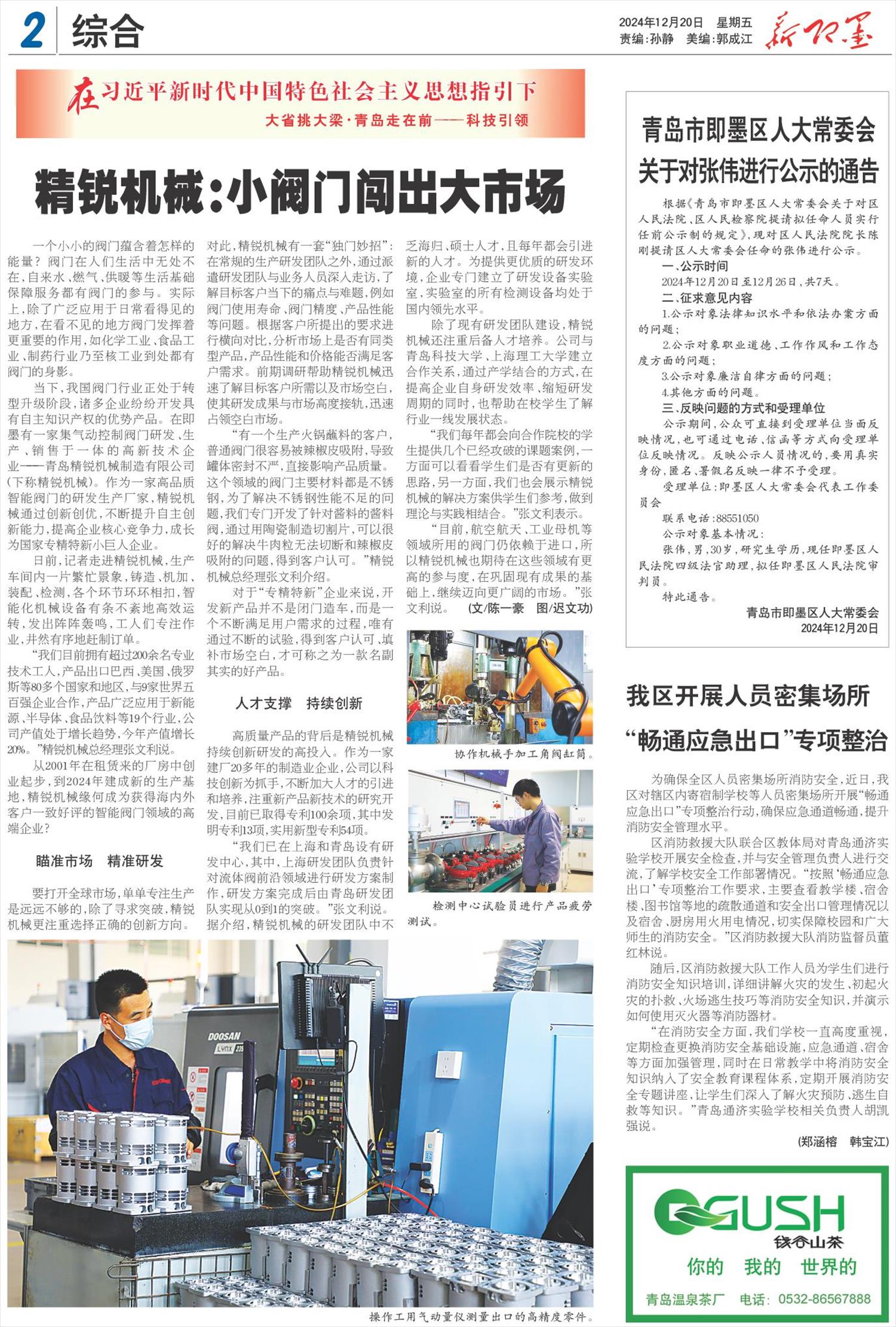 当下,我国阀门行业正处于转型升级阶段,诸多企业纷纷开发具有自主知识产权的优势产品。在即墨有一家集气动控制阀门研发、生产、销售于一体的高新技术企业——青岛精锐机械制造有限公司(下称精锐机械)。作为一家高品质智能阀门的研发生产厂家,精锐机械通过创新创优,不断提升自主创新能力,提高企业核心竞争力,成长为国家专精特新小巨人企业。