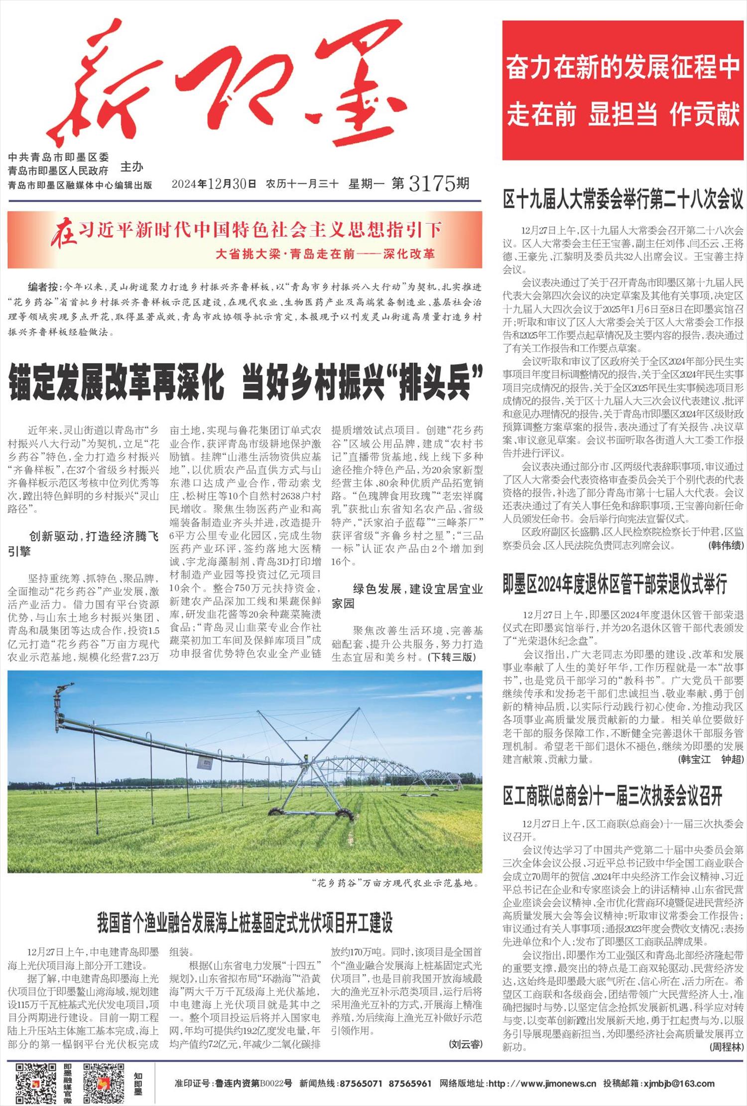 青岛市即墨区第十九届人民代表大会常务委员会第二十八次会议决定:青岛市即墨区第十九届人民代表大会第四次会议于2025年1月7日召开,会期两天(1月6日代表报到及预备会议)。建议会议的主要议程为: