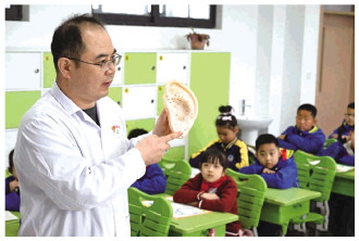 课堂上,即墨区人民医院耳鼻喉科医生张学勇向同学们讲述了“爱耳日”的来历,利用耳朵模型生动地介绍了耳朵的结构和功能、噪声对听力的影响,耐心细致地讲解了健康用耳、保护听力健康的方法和常识,并教育同学们从日常生活细节入手,养成良好的卫生习惯,保护好自己的耳朵,增强爱耳护耳意识。带领同学们学习“五步爱耳操”,同学们在医护人员的示范引导下,认真学习提拉耳尖、按摩耳轮、下拉耳垂、按压耳蜗、上下推耳根,每个分解动作都做得认真到位。