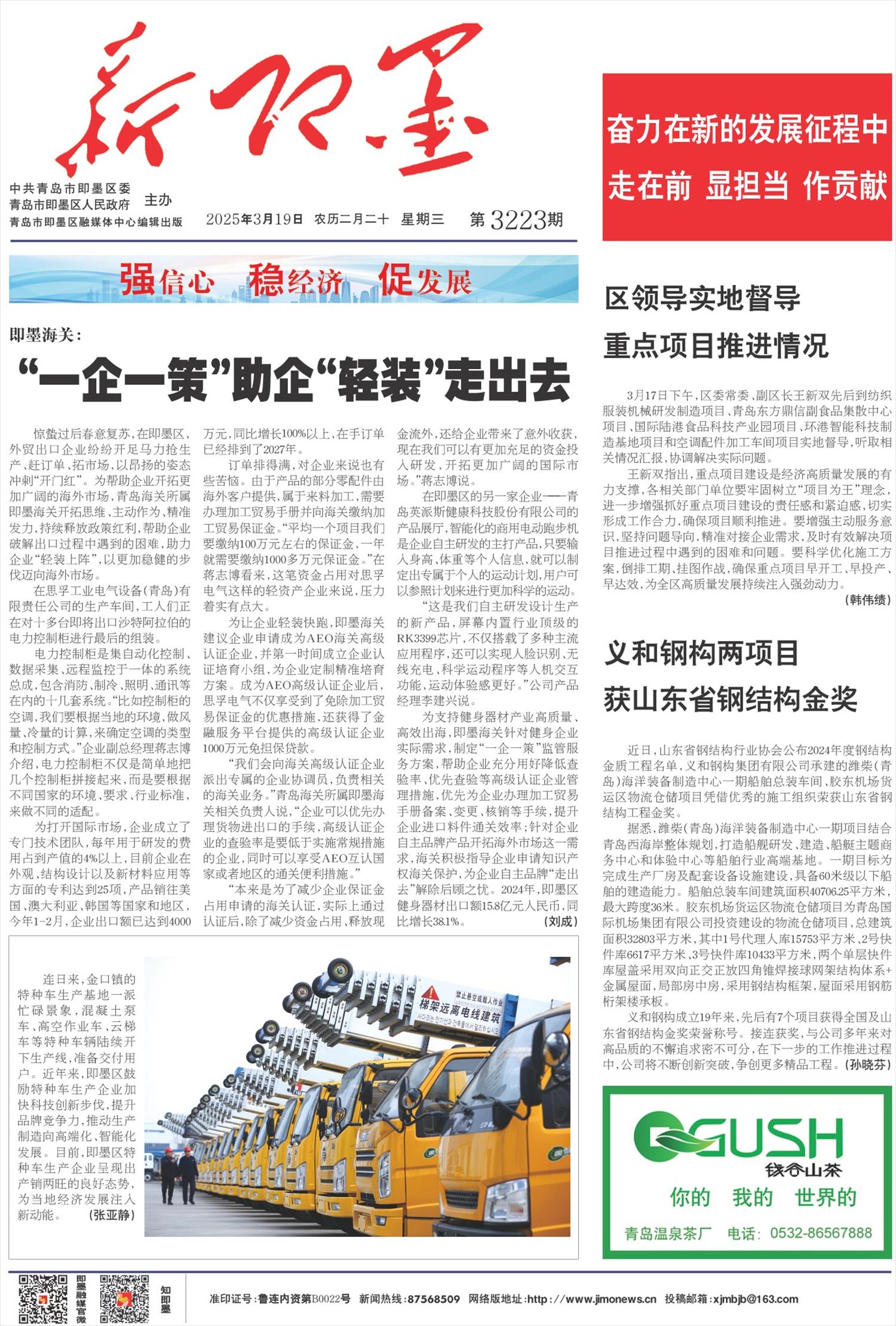 惊蛰过后春意复苏,在即墨区,外贸出口企业纷纷开足马力抢生产、赶订单、拓市场,以昂扬的姿态冲刺“开门红”。为帮助企业开拓更加广阔的海外市场,青岛海关所属即墨海关开拓思维、主动作为、精准发力,持续释放政策红利,帮助企业破解出口过程中遇到的困难,助力企业“轻装上阵”,以更加稳健的步伐迈向海外市场。