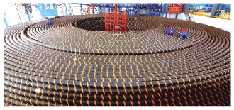青岛汉缆股份有限公司的工人在生产海缆产品。(常青 摄)