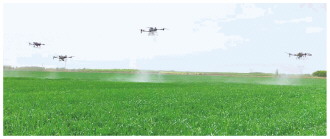 日前,60余架植保无人机迎着朝阳依次起飞,通过低空飞行将混合药液均匀地喷洒到小麦上,全区66万亩小麦“一喷三防”作业正式启动。