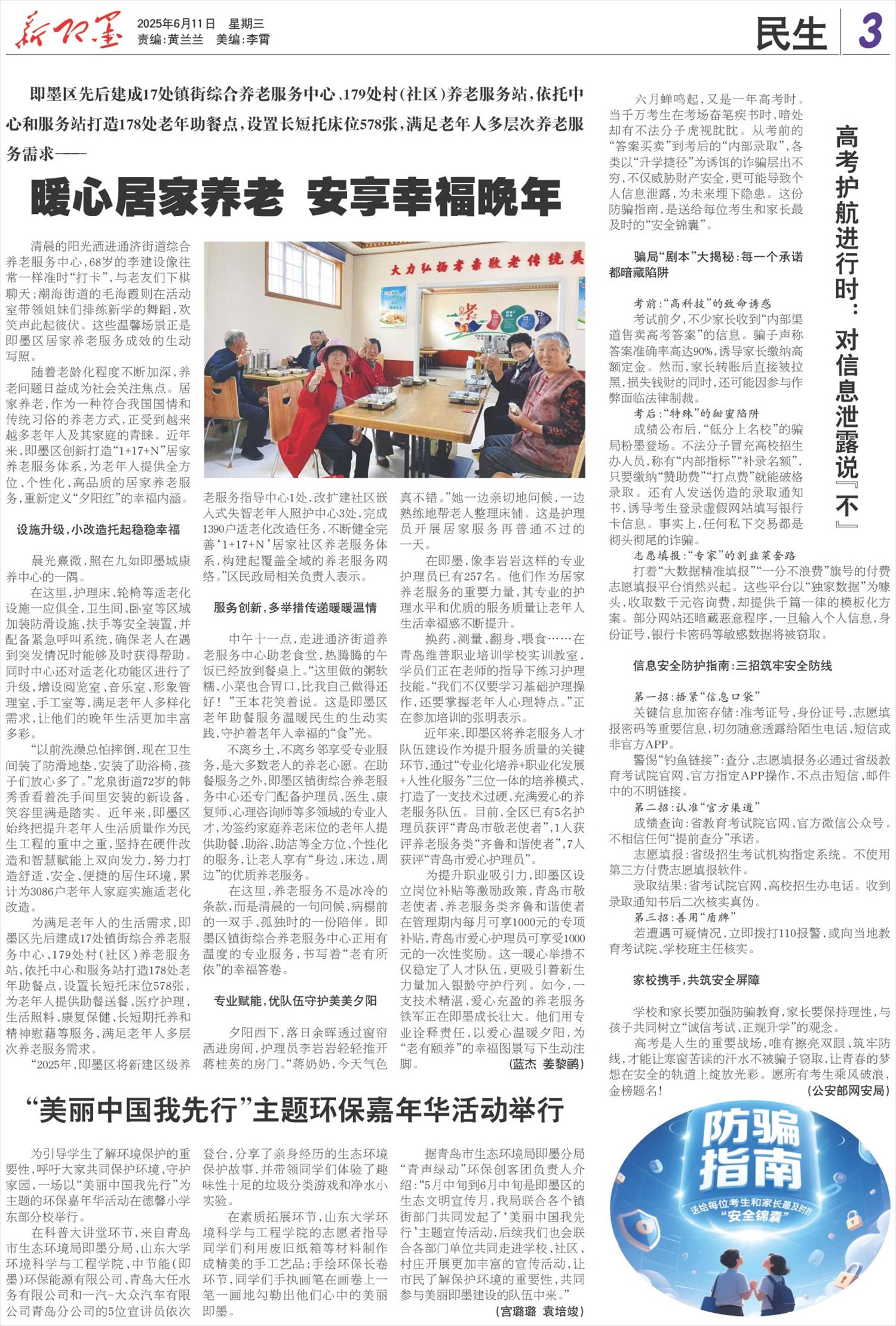 随着老龄化程度不断加深,养老问题日益成为社会关注焦点。居家养老,作为一种符合我国国情和传统习俗的养老方式,正受到越来越多老年人及其家庭的青睐。近年来,即墨区创新打造“1+17+N”居家养老服务体系,为老年人提供全方位、个性化、高品质的居家养老服务,重新定义“夕阳红”的幸福内涵。