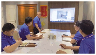 “最近接了一个联体别墅的单,这是别墅的前期效果图,它的难点在于柜门跟冰箱的衔接。”青岛盛凯木业有限公司副总经理宋滨世向记者介绍,“这个难度非常大,要求误差不能超出2mm,所以我们就做了一个规划,一个是柜体制作,柜体制作控制误差要求在0.5mm之内,柜门儿的厚度加上宽度,也都考虑在这0.5mm之内了。然后是五金功能件儿,采用了大口径的五金件儿,这样才能和这个智能电器配套起来。就这样,我们一步步慢慢解决了这个难题。”