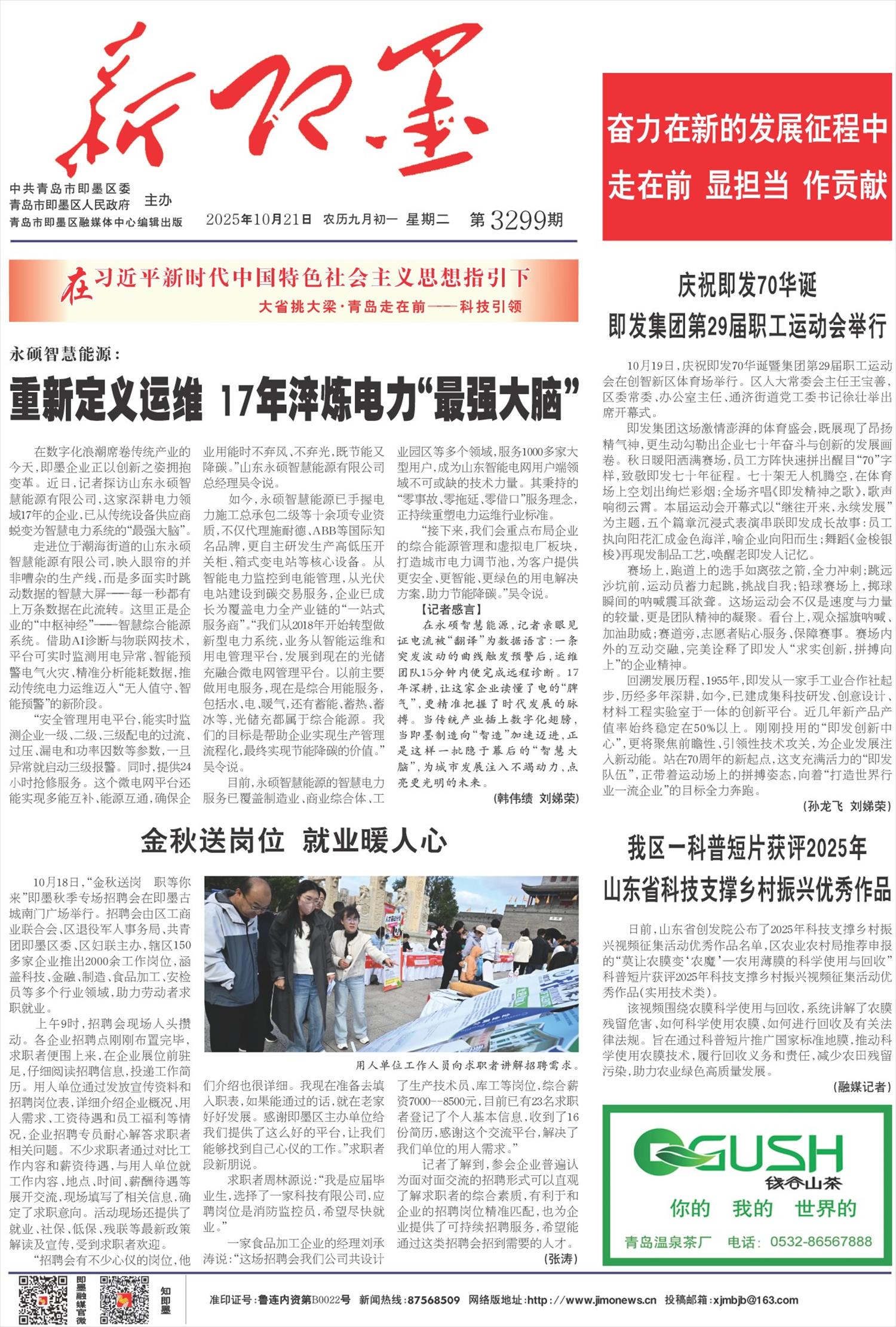 在永硕智慧能源,记者亲眼见证电流被“翻译”为数据语言:一条突发波动的曲线触发预警后,运维团队15分钟内便完成远程诊断。17年深耕,让这家企业读懂了电的“脾气”,更精准把握了时代发展的脉搏。当传统产业插上数字化翅膀,当即墨制造向“智造”加速迈进,正是这样一批隐于幕后的“智慧大脑”,为城市发展注入不竭动力,点亮更光明的未来。