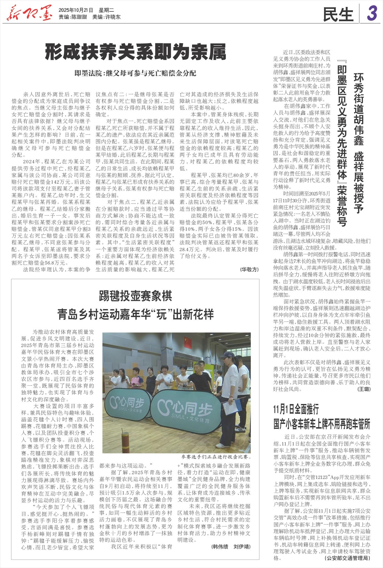 此次表彰不仅是对胡伟鑫、盛祥展见义勇为行为的认可,更旨在弘扬见义勇为精神,传递社会正能量,号召更多市民以他们为榜样,共同营造崇德向善、乐于助人的良好社会风尚。 (王璐)