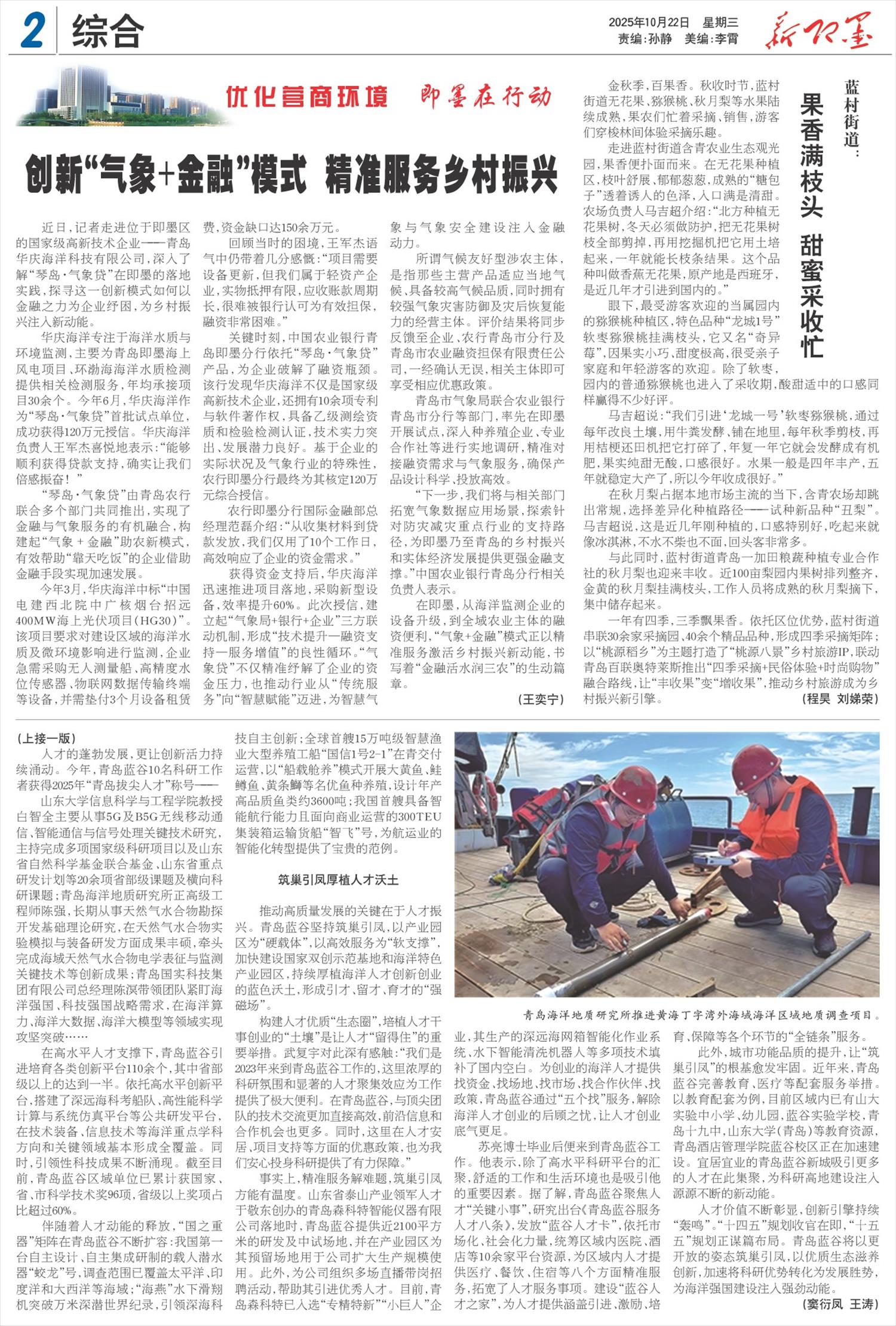 在即墨,从海洋监测企业的设备升级,到全域农业主体的融资便利,“气象+金融”模式正以精准服务激活乡村振兴新动能,书写着“金融活水润三农”的生动篇章。