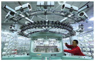 纬编工人在生产功能性面料。梁孝鹏 摄