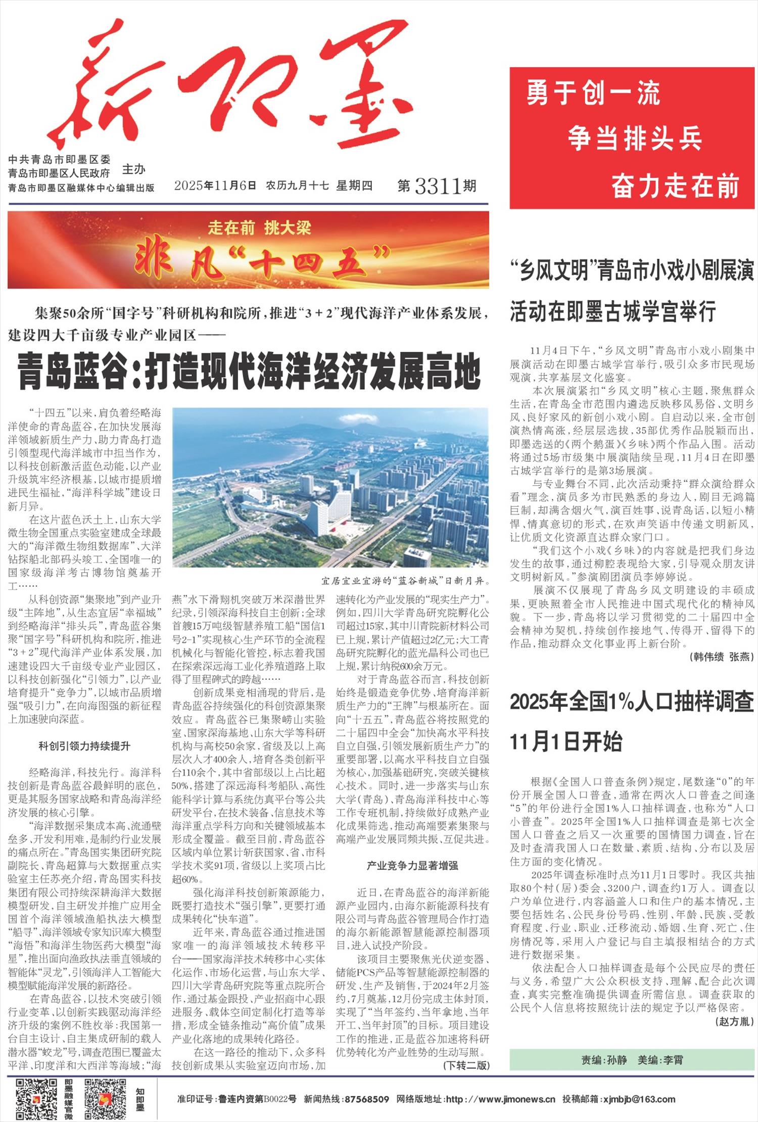 锚定“海洋科学城”建设目标,科研创新成果不断涌现,产业集群效应日益凸显,生态环境质量持续改善,城市综合承载能力显著提升。面向“十五五”新征程,青岛蓝谷将在经略海洋的时代浪潮中,以高水平科技自立自强为引擎,以高质量产业发展为支撑,以高品质城市建设为保障,书写蓝色发展的新篇章。