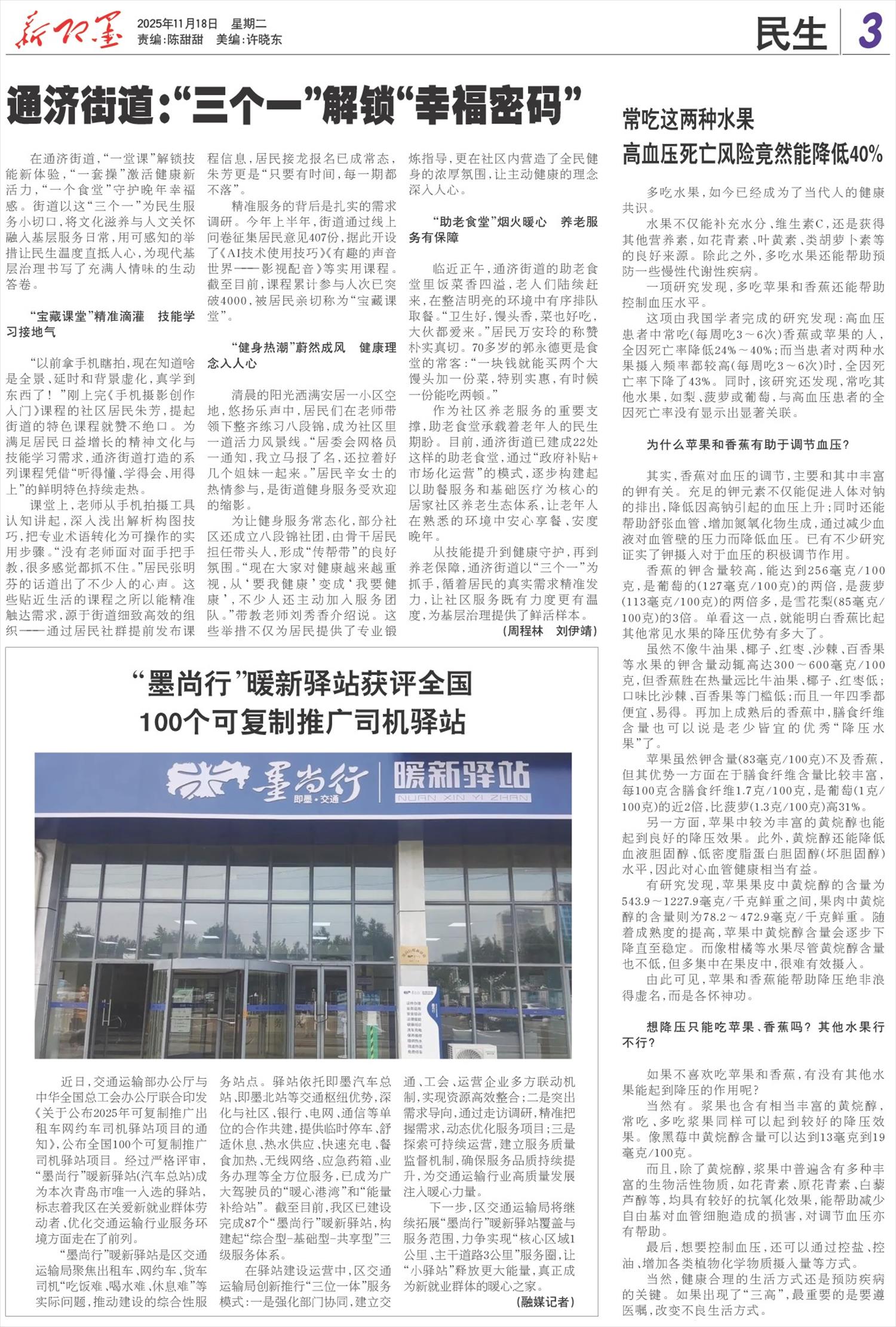 近日,交通运输部办公厅与中华全国总工会办公厅联合印发《关于公布2025年可复制推广出租车网约车司机驿站项目的通知》,公布全国100个可复制推广司机驿站项目。经过严格评审,“墨尚行”暖新驿站(汽车总站)成为本次青岛市唯一入选的驿站,标志着我区在关爱新就业群体劳动者、优化交通运输行业服务环境方面走在了前列。