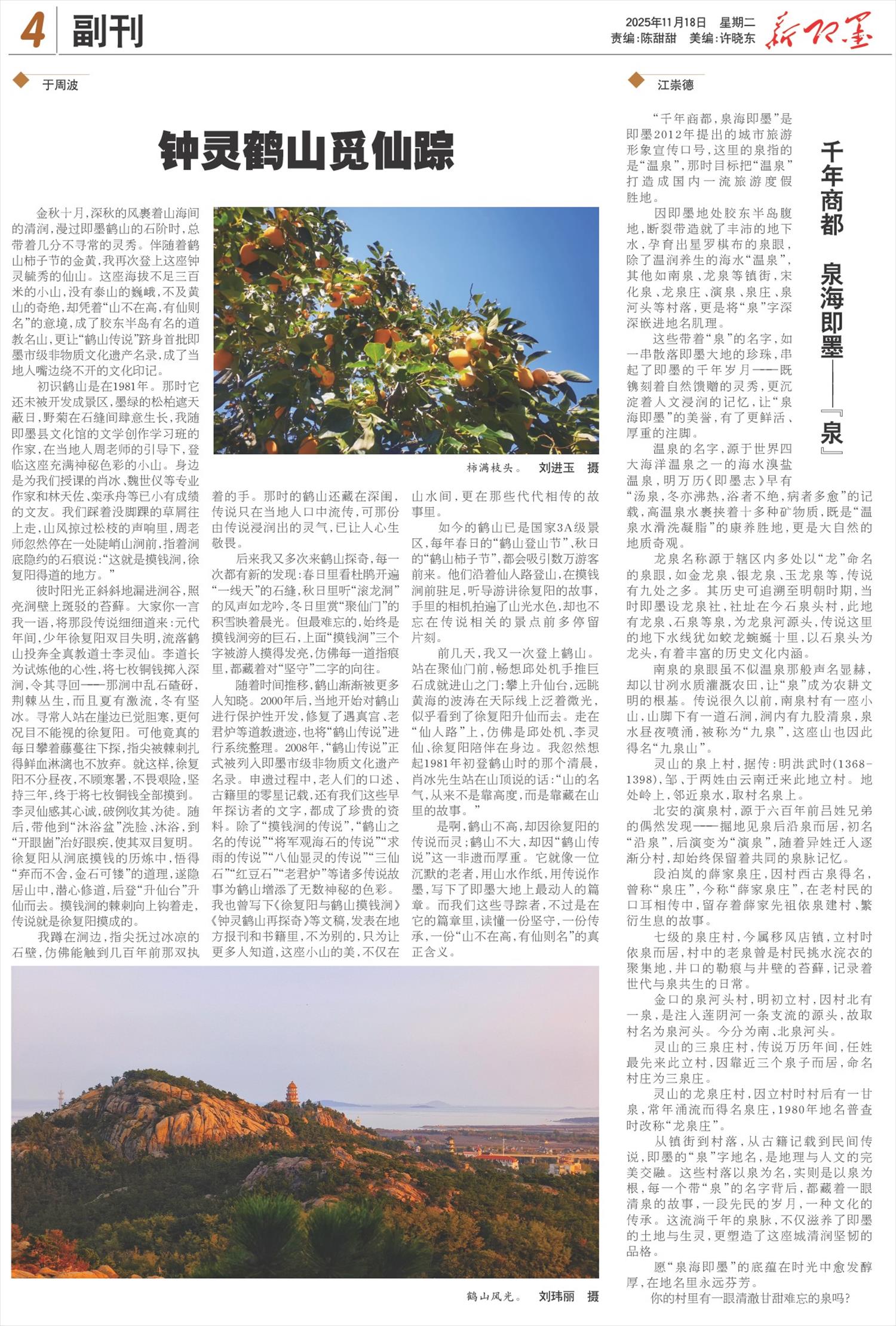 这些带着“泉”的名字,如一串散落即墨大地的珍珠,串起了即墨的千年岁月——既镌刻着自然馈赠的灵秀,更沉淀着人文浸润的记忆,让“泉海即墨”的美誉,有了更鲜活、厚重的注脚。