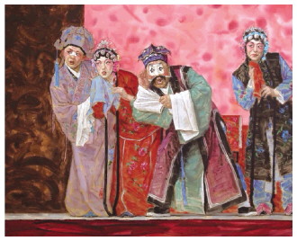“中国北京国际美术双年展”(简称“北京双年展”),展览通联五大洲150多个国家和地区,投稿国达130多个,参展国接近120个,历届共计5000多人次近6000件作品参展,观众累计数百万。经20余年发展,已成为中国最大规模的国际美术交流和展示平台。 图为获奖作品:水彩画《戏曲传承之墙头记》