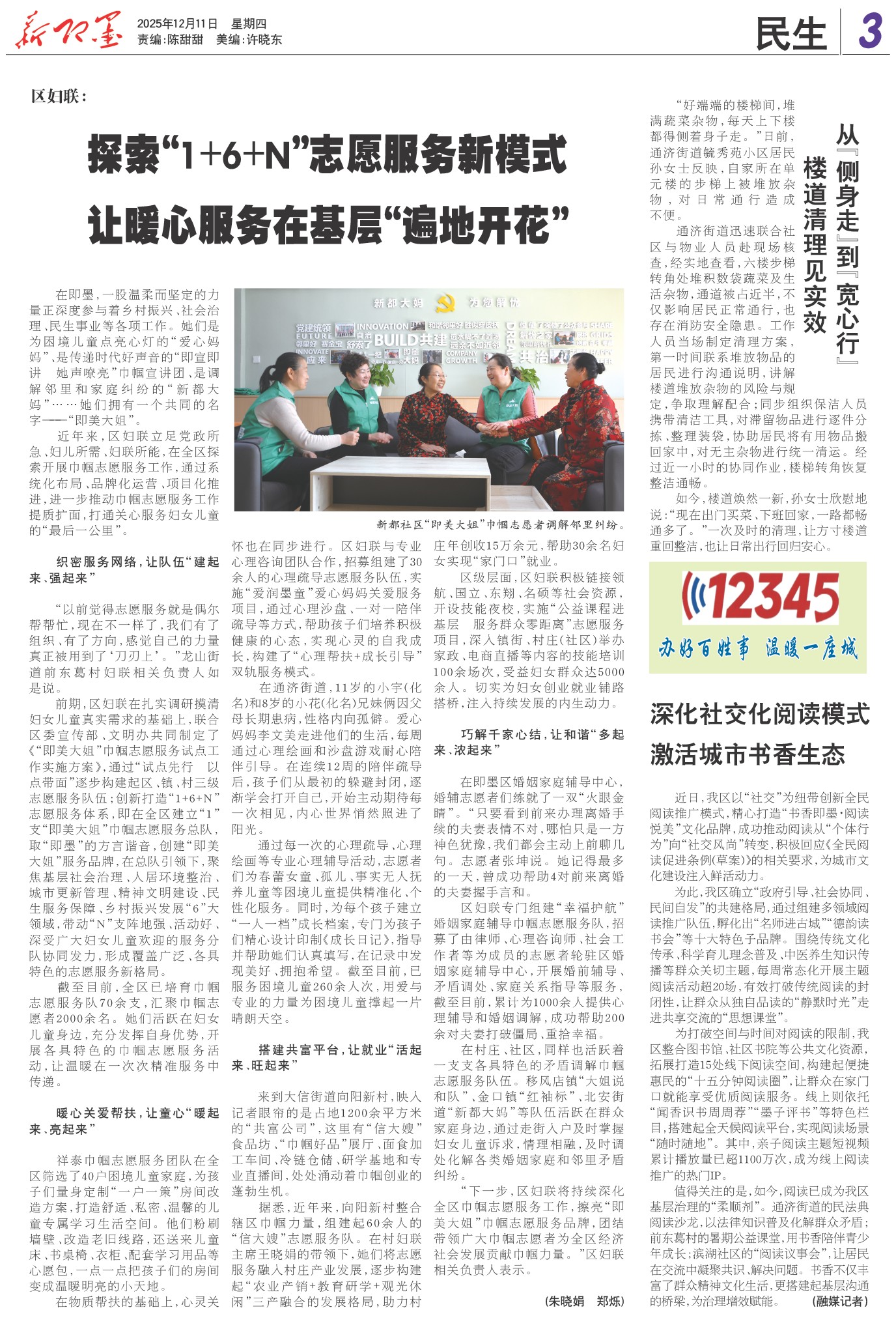 值得关注的是,如今,阅读已成为我区基层治理的“柔顺剂”。通济街道的民法典阅读沙龙,以法律知识普及化解群众矛盾;前东葛村的暑期公益课堂,用书香陪伴青少年成长;滨湖社区的“阅读议事会”,让居民在交流中凝聚共识、解决问题。书香不仅丰富了群众精神文化生活,更搭建起基层沟通的桥梁,为治理增效赋能。 (融媒记者)