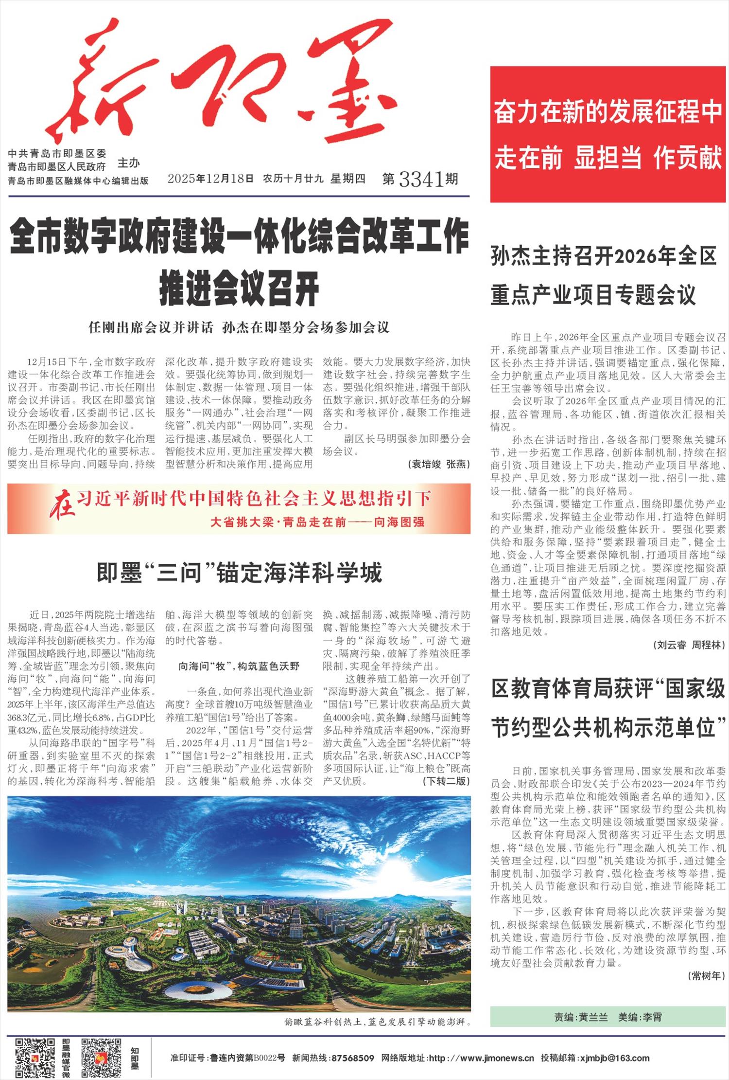 从问海路串联的“国字号”科研重器,到实验室里不灭的探索灯火,即墨正将千年“向海求索”的基因,转化为深海科考、智能船舶、海洋大模型等领域的创新突破,在深蓝之滨书写着向海图强的时代答卷。