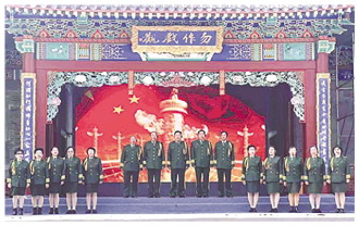 朱庆福(后排右二)带领“银发艺术团”演出。