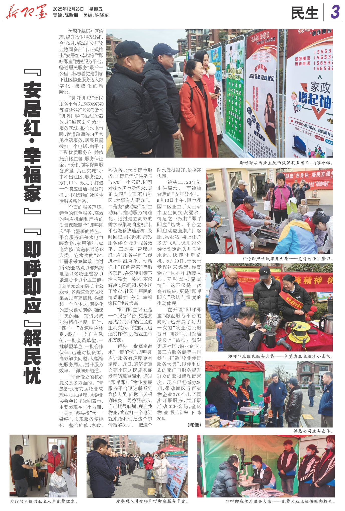 为深化基层社区治理,提升物业服务效能,今年3月,新城市安居物业协同多部门,正式推出“安居红·幸福家”“即呼即应”便民服务平台,畅通居民服务“最后一公里”,标志着党建引领下社区物业服务迈入数字化、集成化的新阶段。