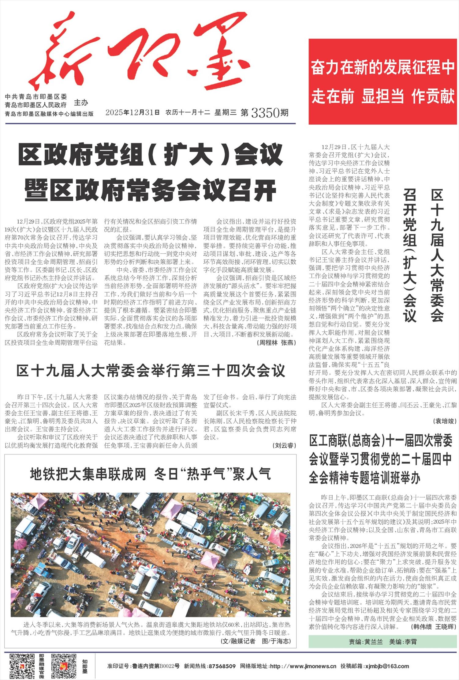 区工商联(总商会)十一届四次常委会议暨学习贯彻党的二十届四中全会精神专题培训班举办   昨日上午,即墨区工商联(总商会)十一届四次常委会议召开,传达学习《中国共产党第二十届中央委员会第四次全体会议公报》《中共中央关于制定国民经济和社会发展第十五个五年规划的建议》及其说明;2025年中央经济工作会议精神;以及全国、山东省、青岛市工商联常委会议精神。