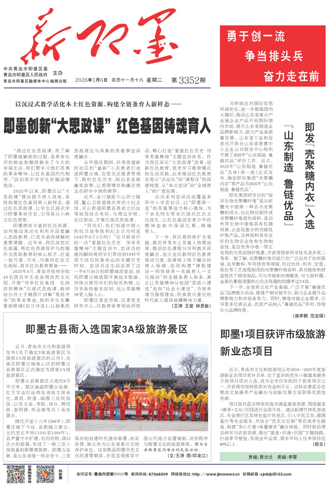 即墨拥有丰富的红色资源,如何推动其活化利用并深度融入思政教育,已成为亟待破解的重要课题。近年来,我区深挖红色底蕴,将红色资源保护与挖掘作为思政教育的核心抓手,打造一批可看、可学、可感的红色文化地标,筑牢红色教育根基——