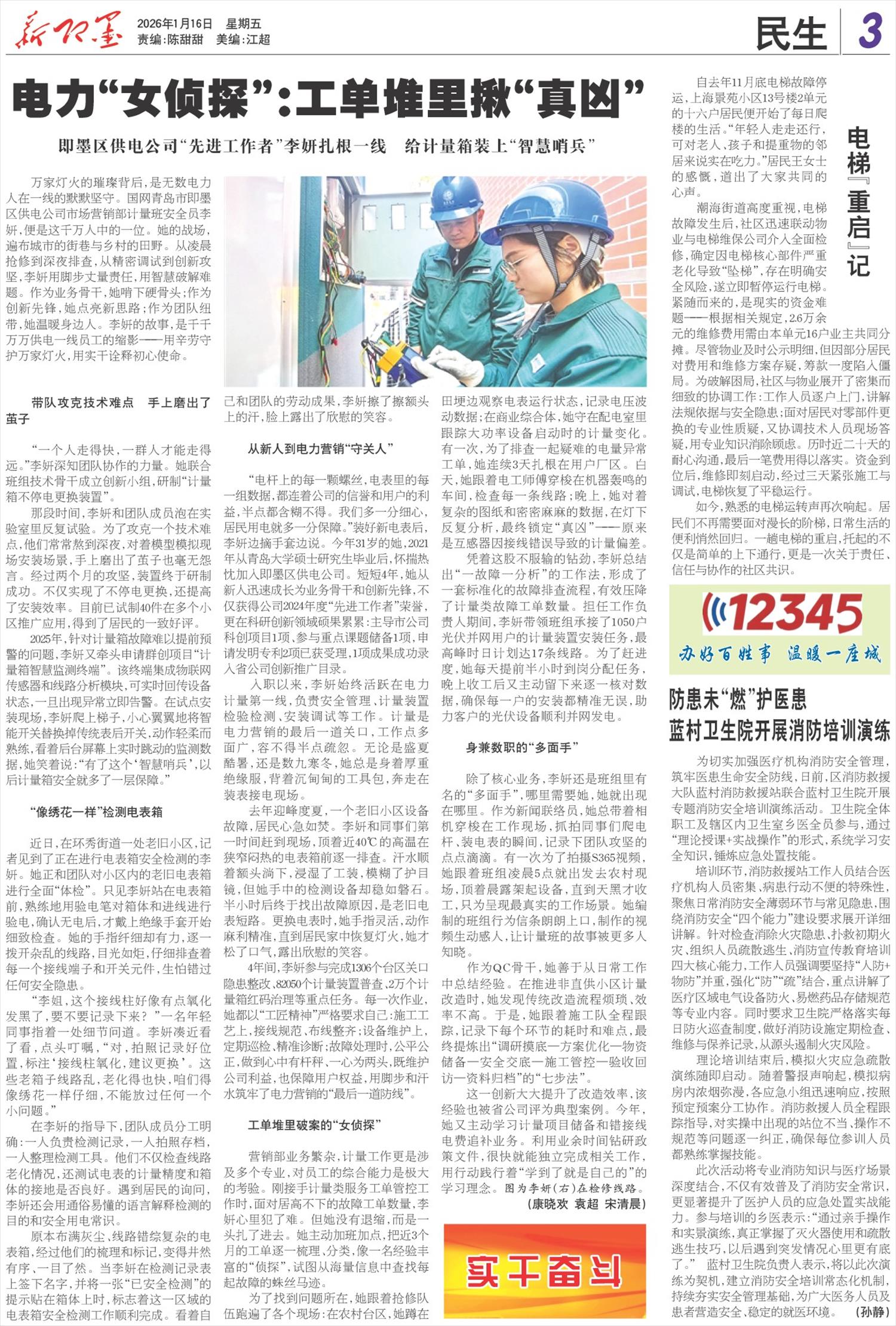 2025年,针对计量箱故障难以提前预警的问题,李妍又牵头申请群创项目“计量箱智慧监测终端”。该终端集成物联网传感器和线路分析模块,可实时回传设备状态,一旦出现异常立即告警。在试点安装现场,李妍爬上梯子,小心翼翼地将智能开关替换掉传统表后开关,动作轻柔而熟练,看着后台屏幕上实时跳动的监测数据,她笑着说:“有了这个‘智慧哨兵’,以后计量箱安全就多了一层保障。”