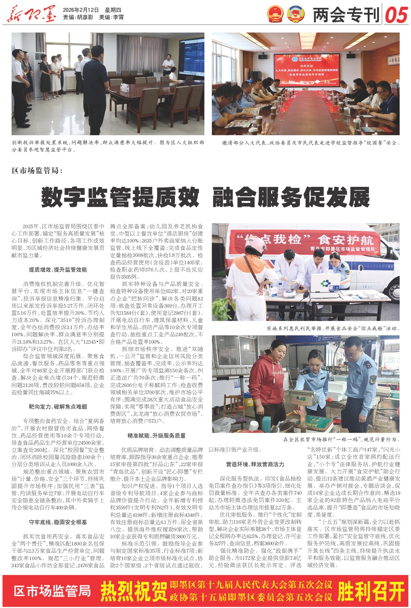 2025年,区市场监管局围绕区委中心工作部署,锚定“服务高质量发展”核心目标,创新工作路径,各项工作成效明显,为区域经济社会持续健康发展贡献市监力量。