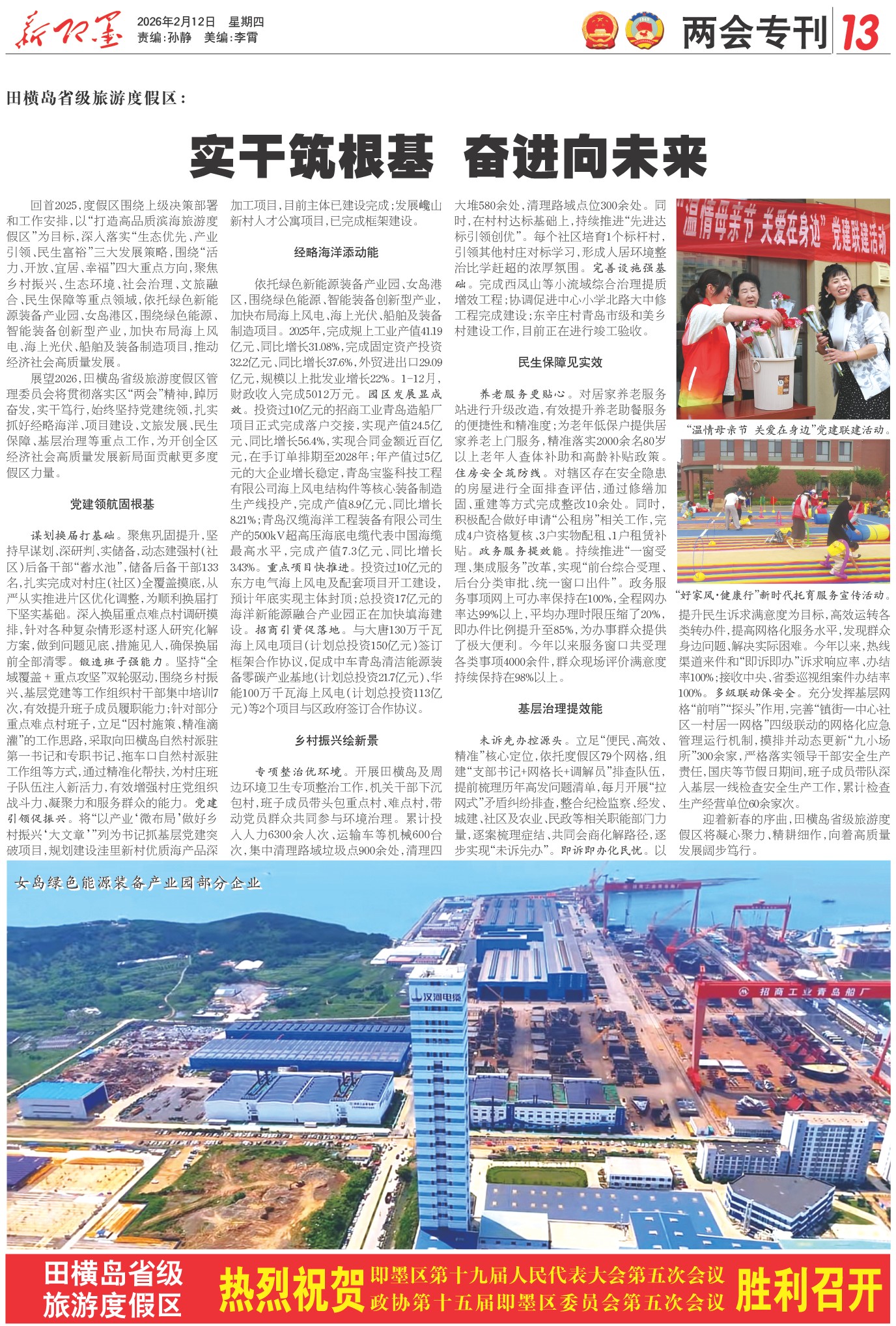 展望2026,田横岛省级旅游度假区管理委员会将贯彻落实区“两会”精神,踔厉奋发,实干笃行,始终坚持党建统领,扎实抓好经略海洋、项目建设、文旅发展、民生保障、基层治理等重点工作,为开创全区经济社会高质量发展新局面贡献更多度假区力量。